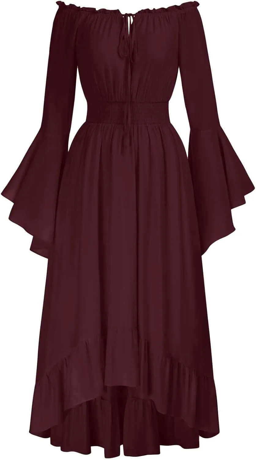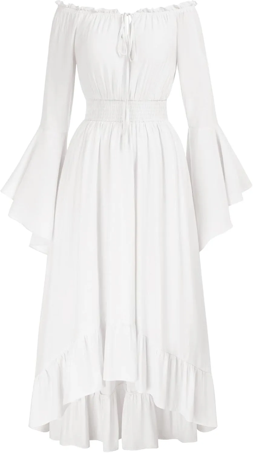 • Renaissance Faire Costume Women Off Shoulder Long Bell Sleeve High Low Dress