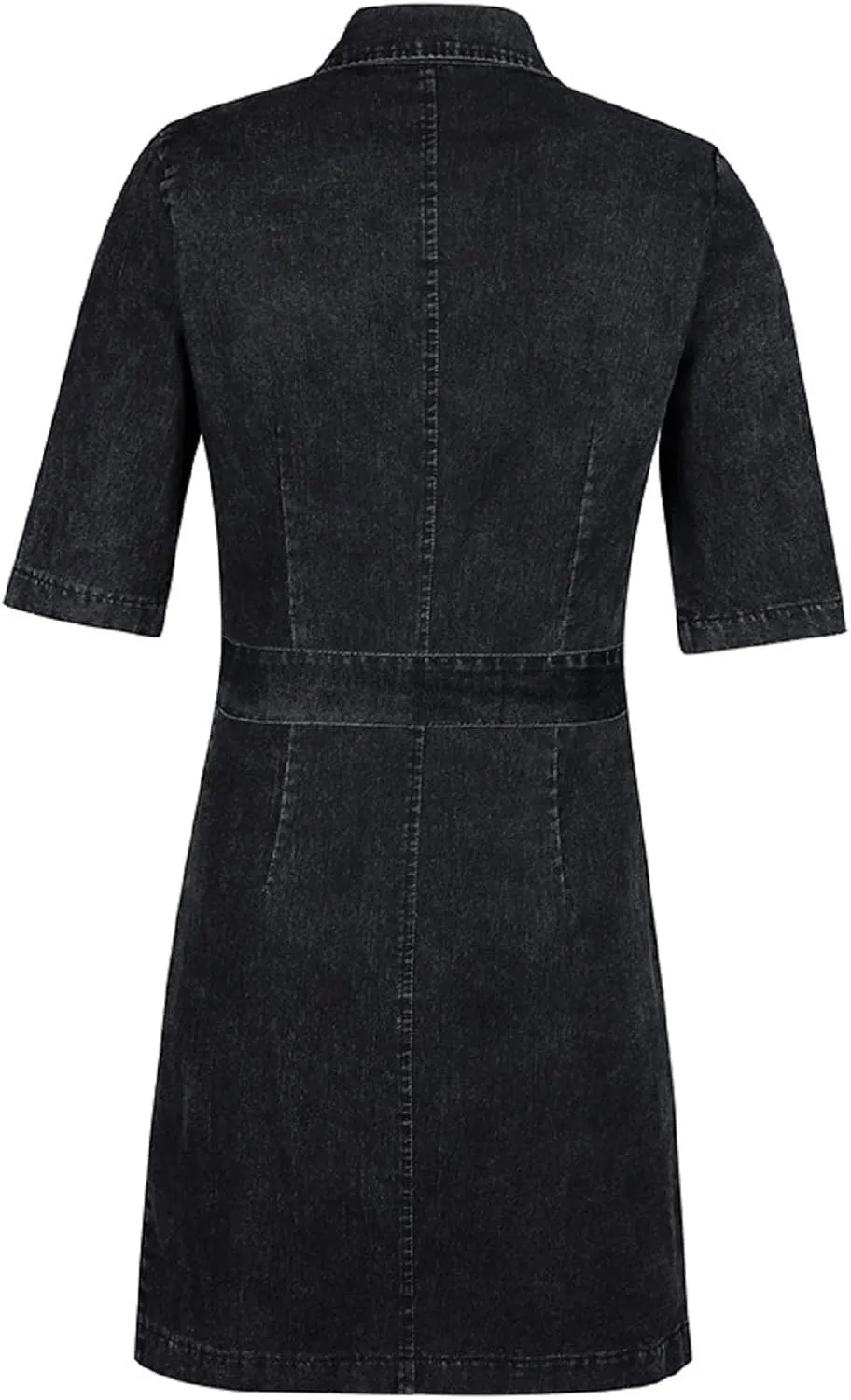 Women's Bodycon Lapel Collar Front Zip Bow-Tie Pockets Mini Denim Dress