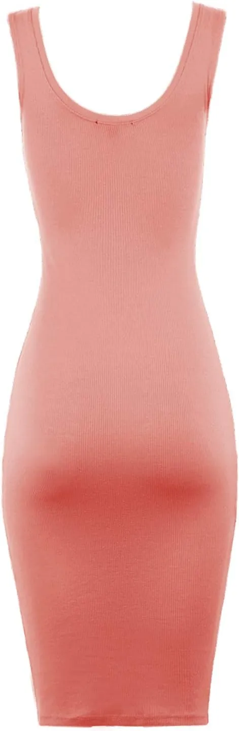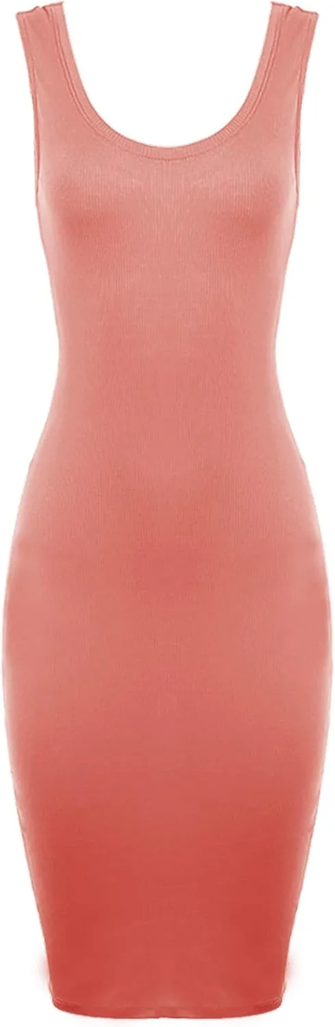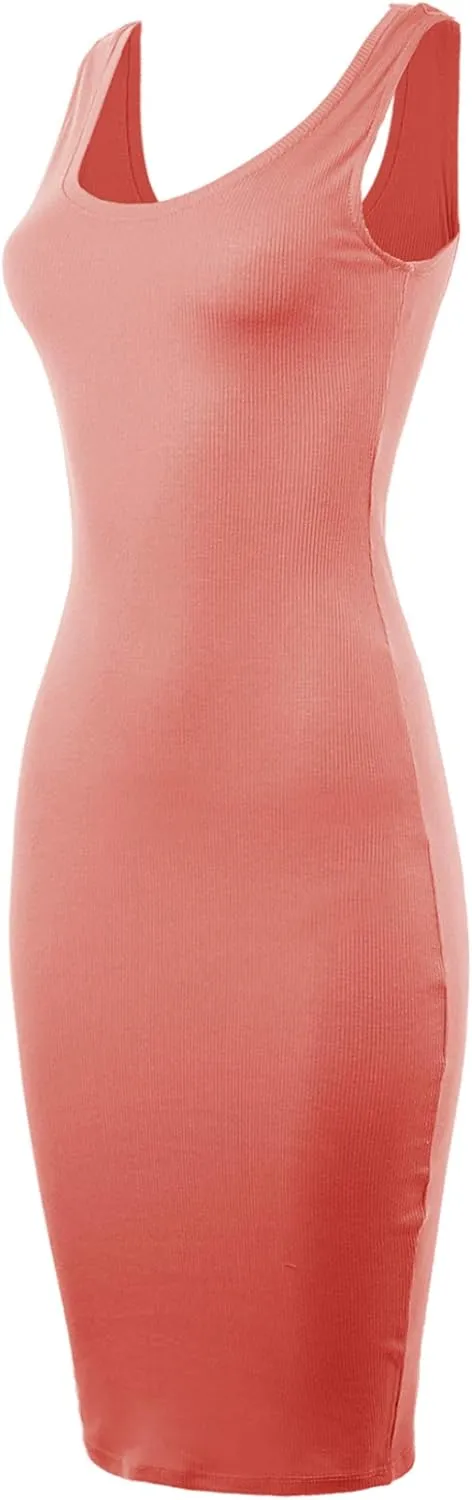 Women's Ribbed Knit Sleeveless Scoop Neck Midi Bodycon Dress