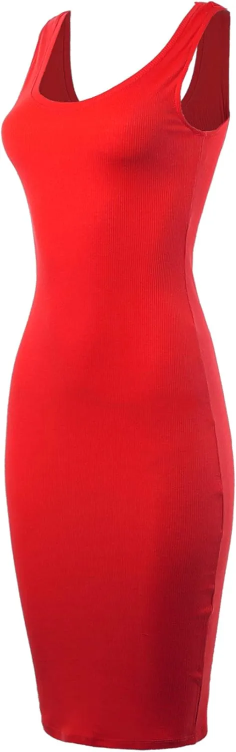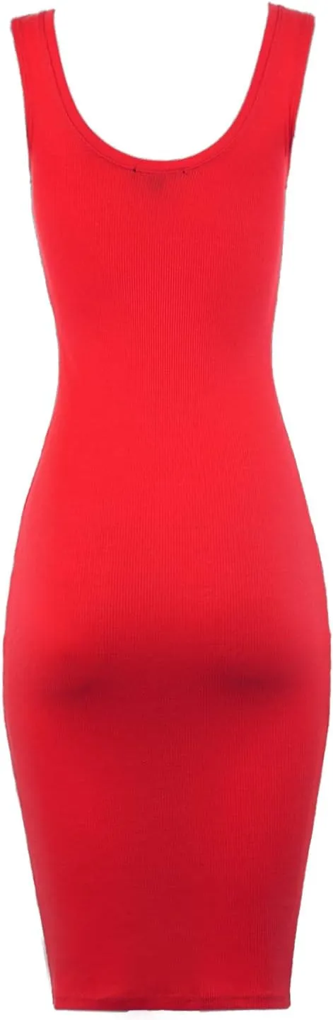 • Women's Ribbed Knit Sleeveless Scoop Neck Midi Bodycon Dress
