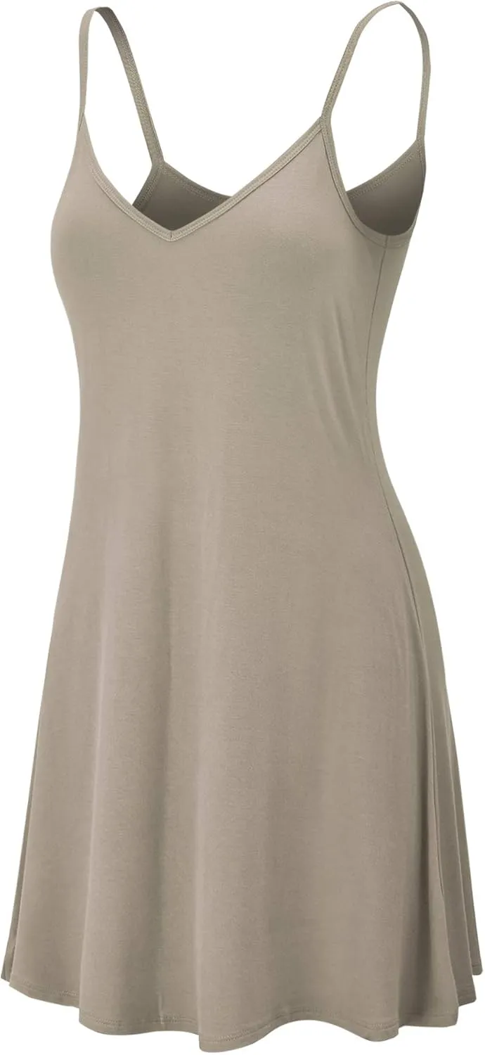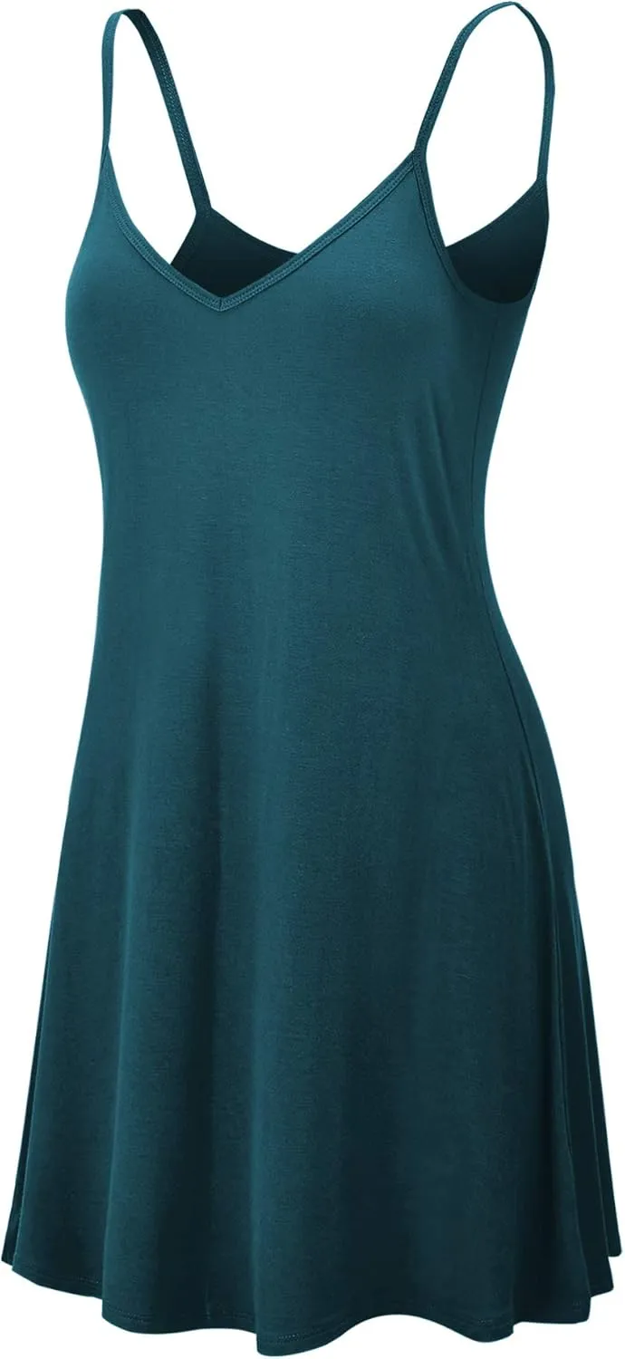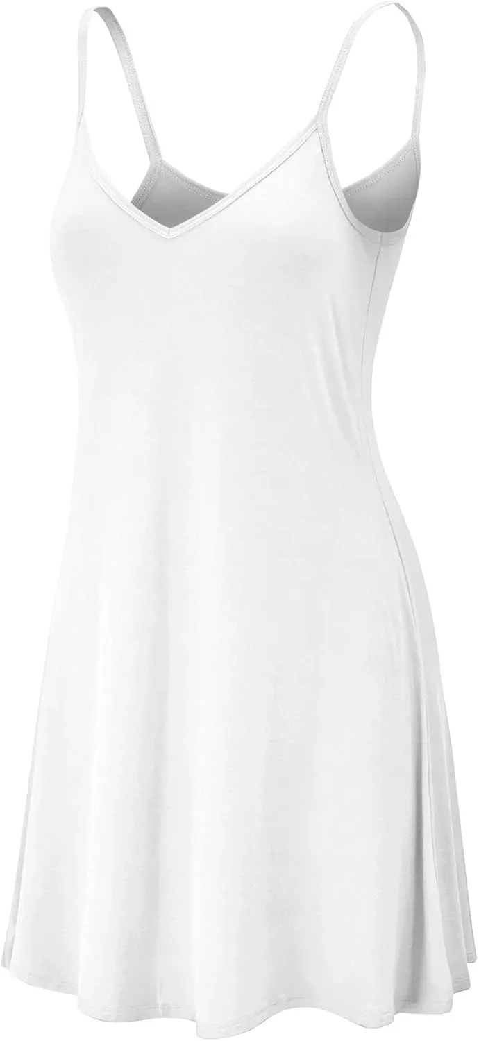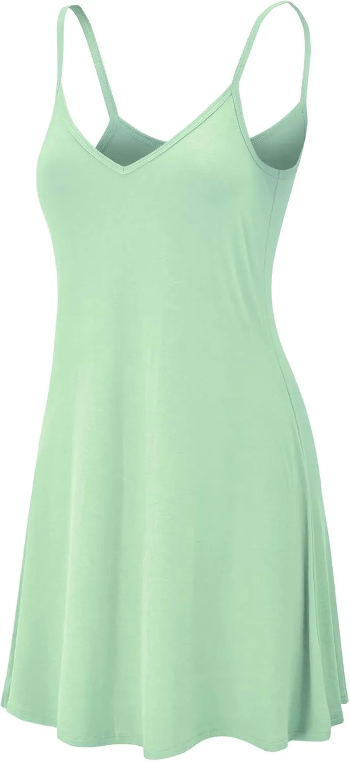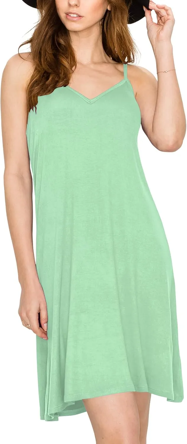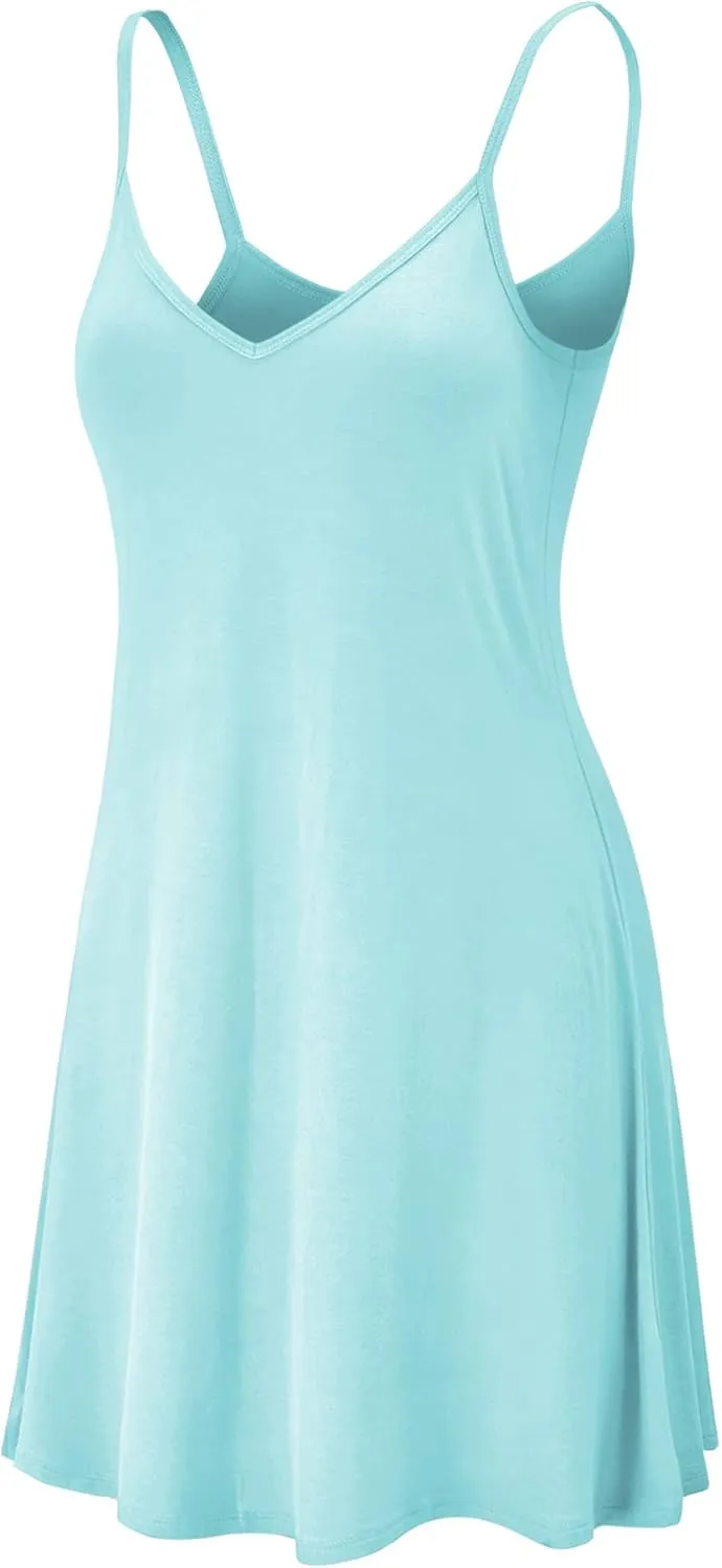 • Women's V Neck Spaghetti Strap Cami Tunic Short Slip Dress