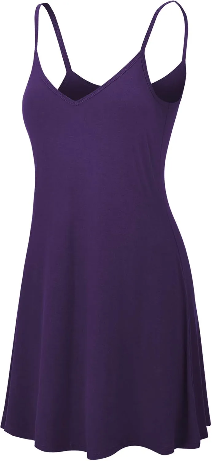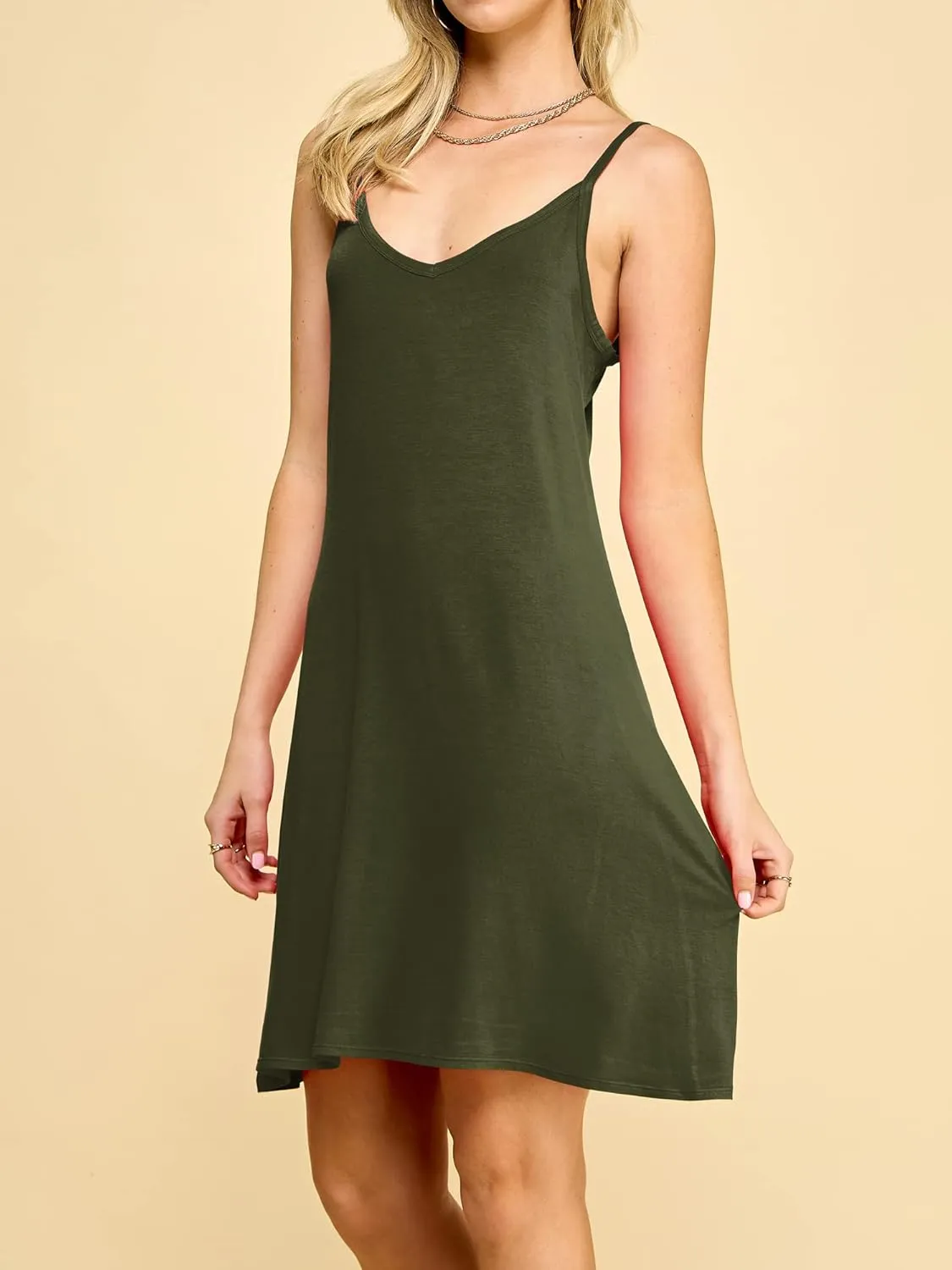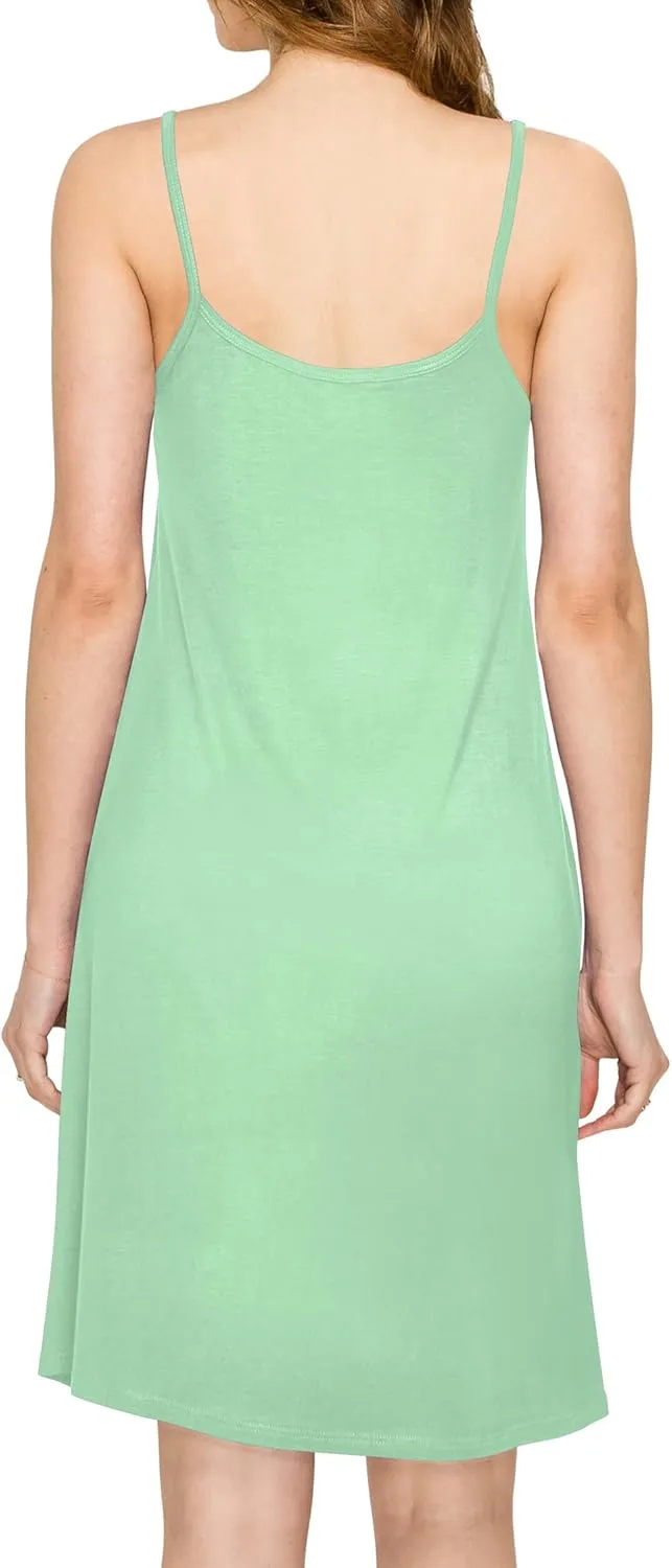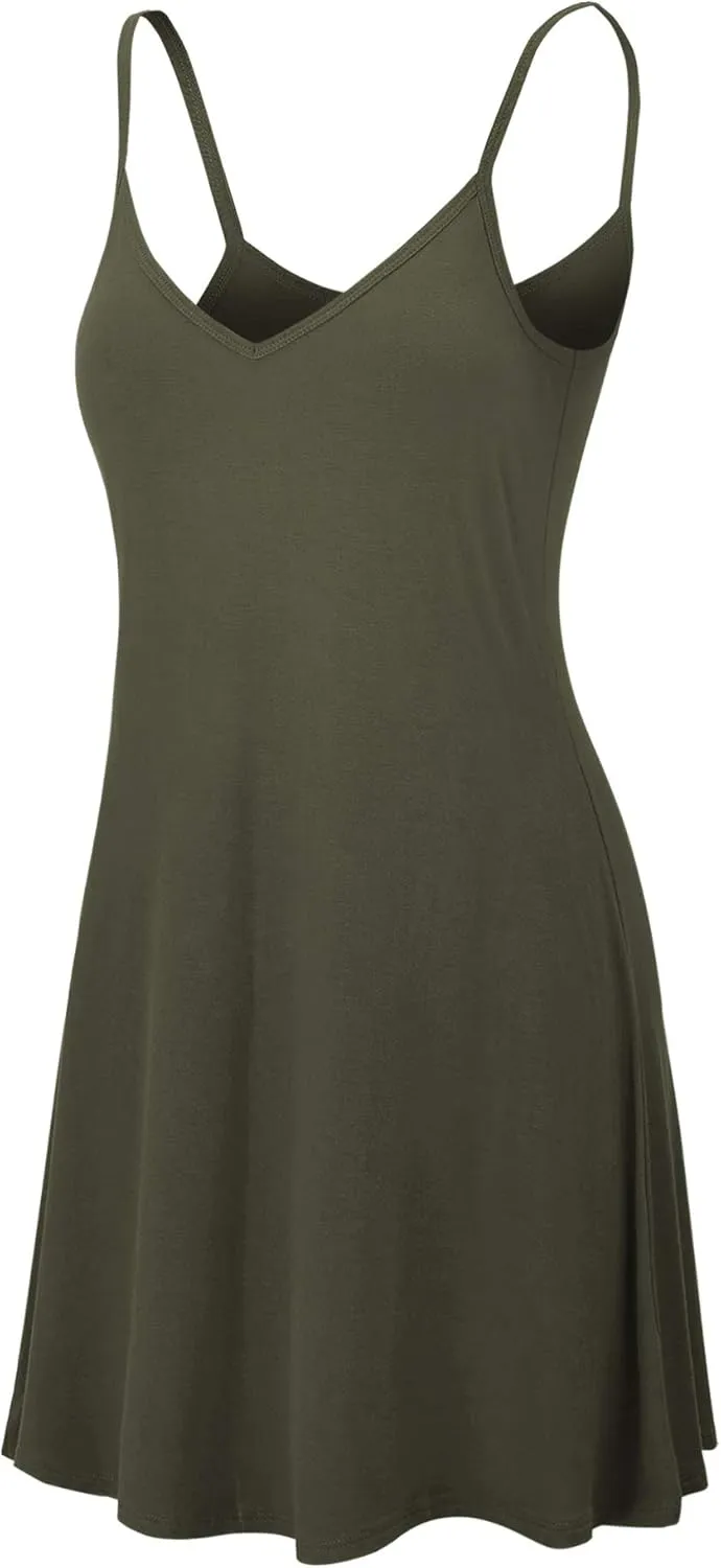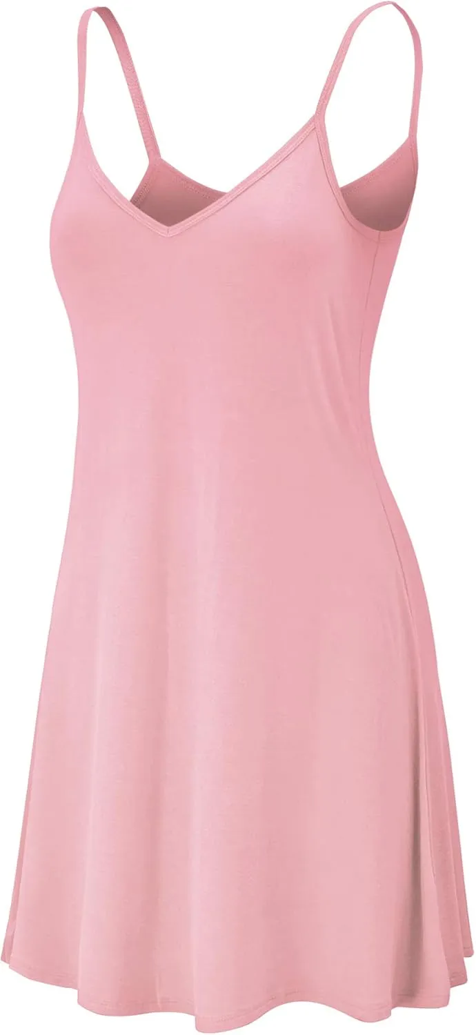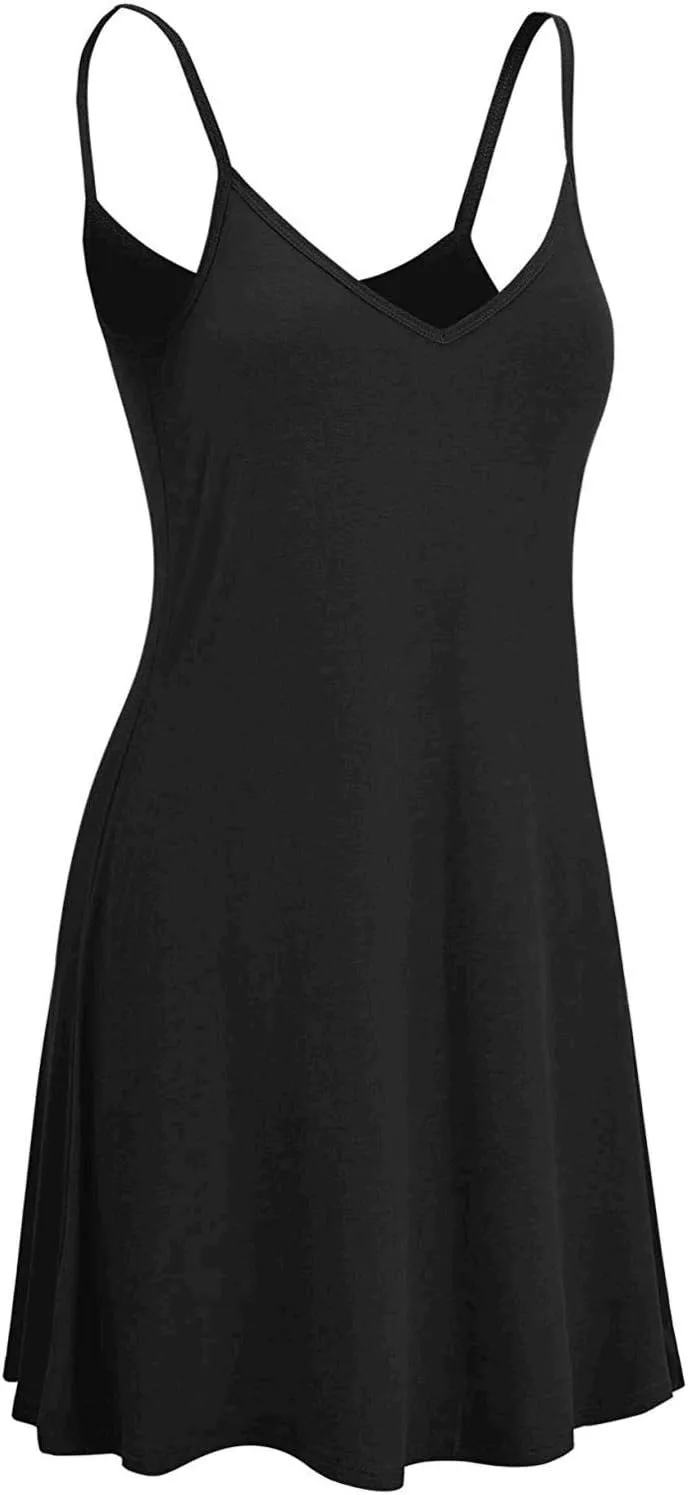• Women's V Neck Spaghetti Strap Cami Tunic Short Slip Dress