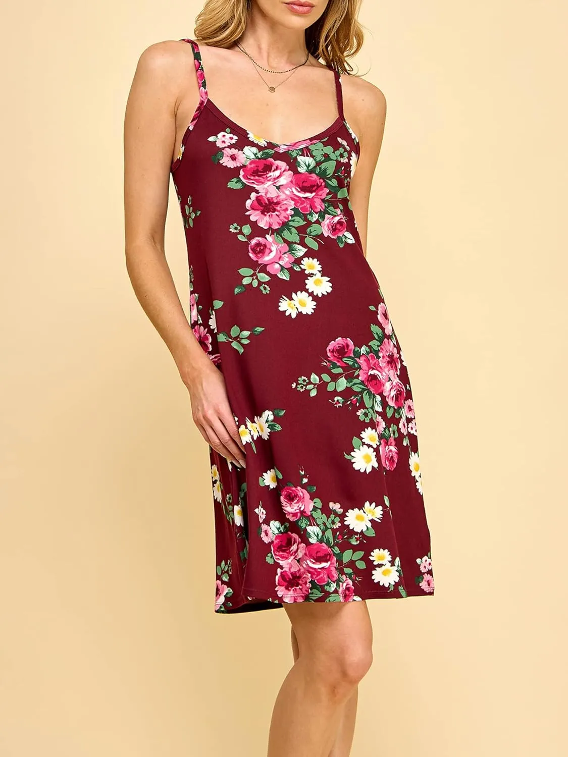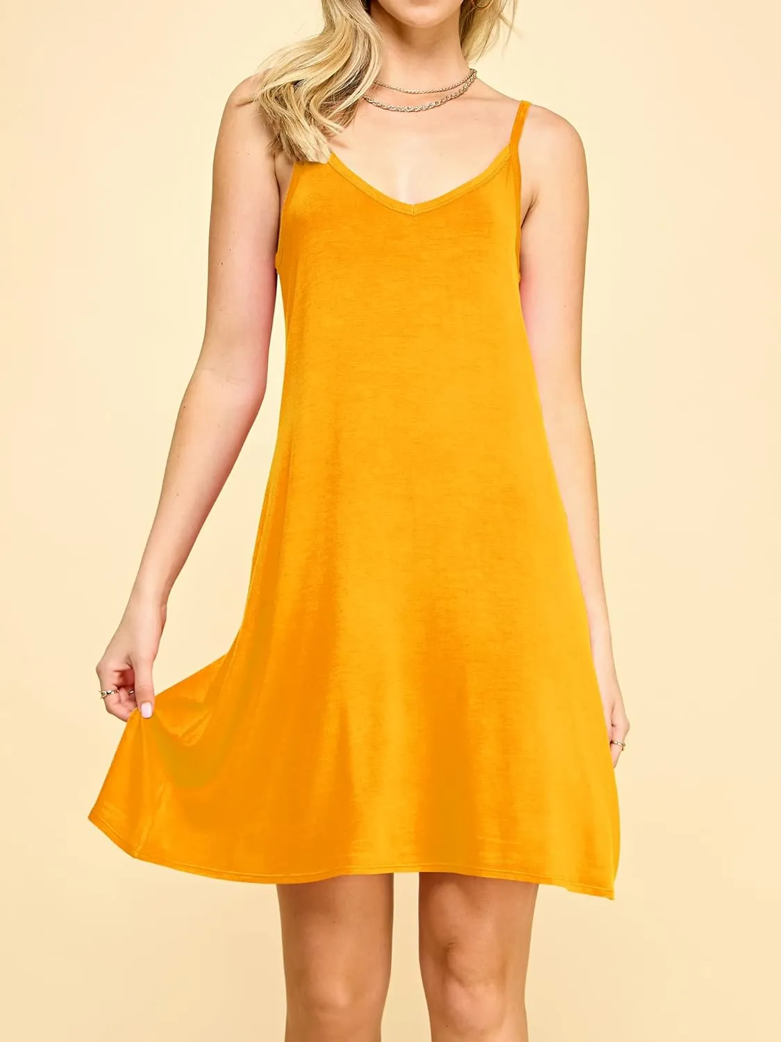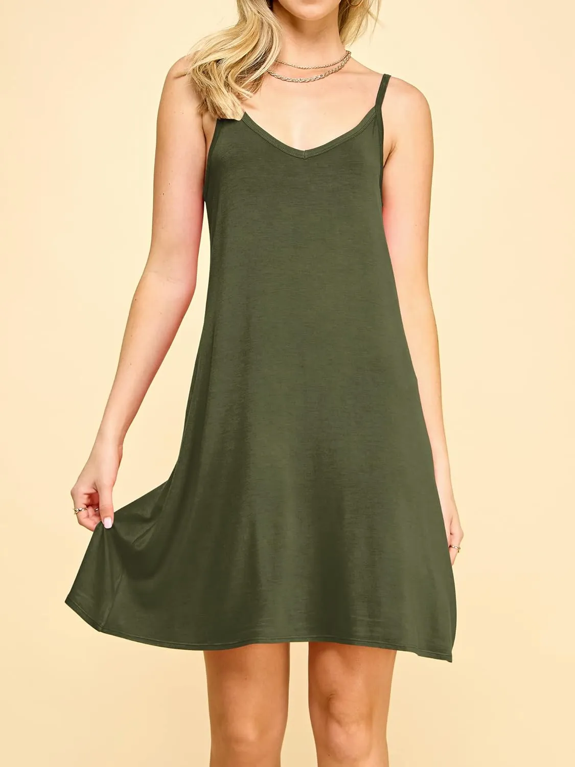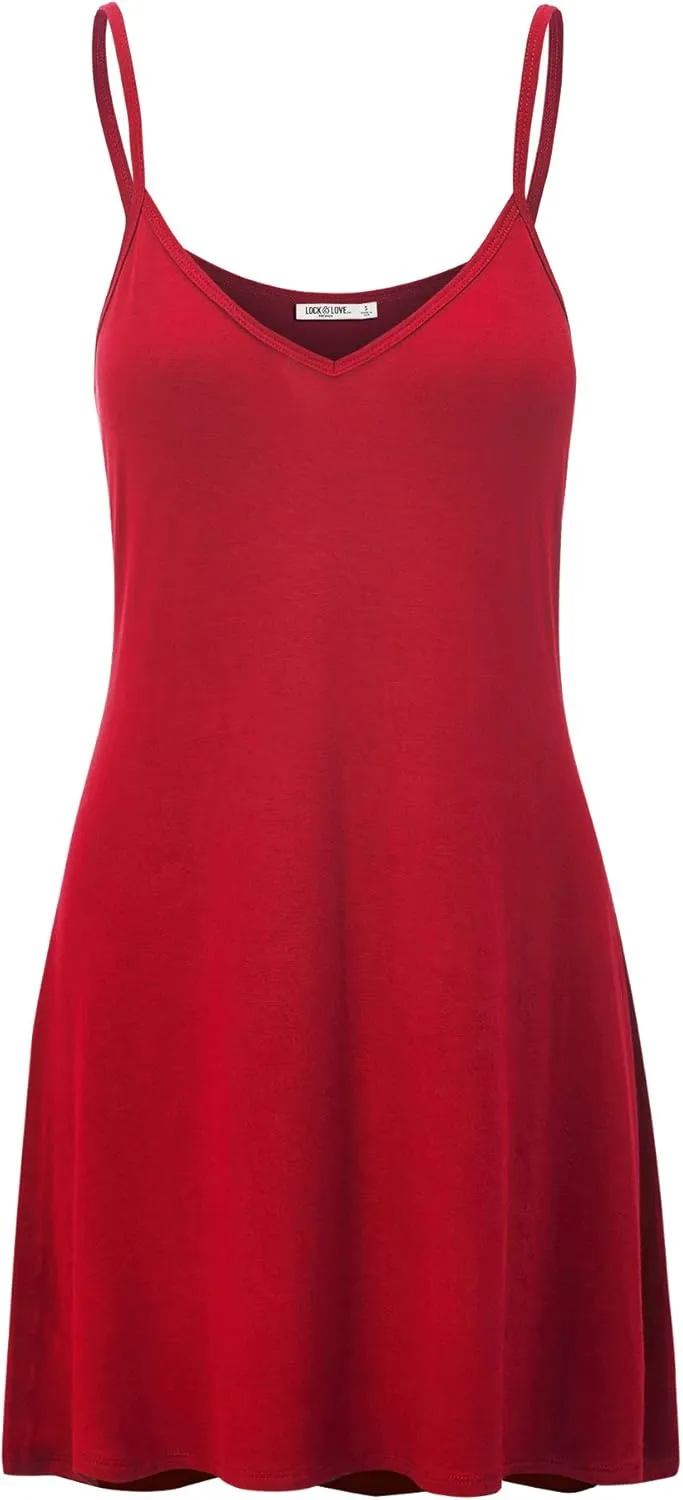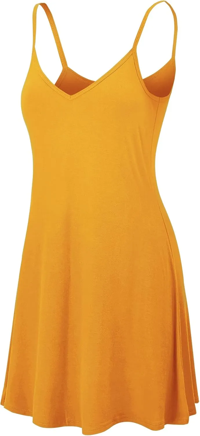 • Women's V Neck Spaghetti Strap Cami Tunic Short Slip Dress