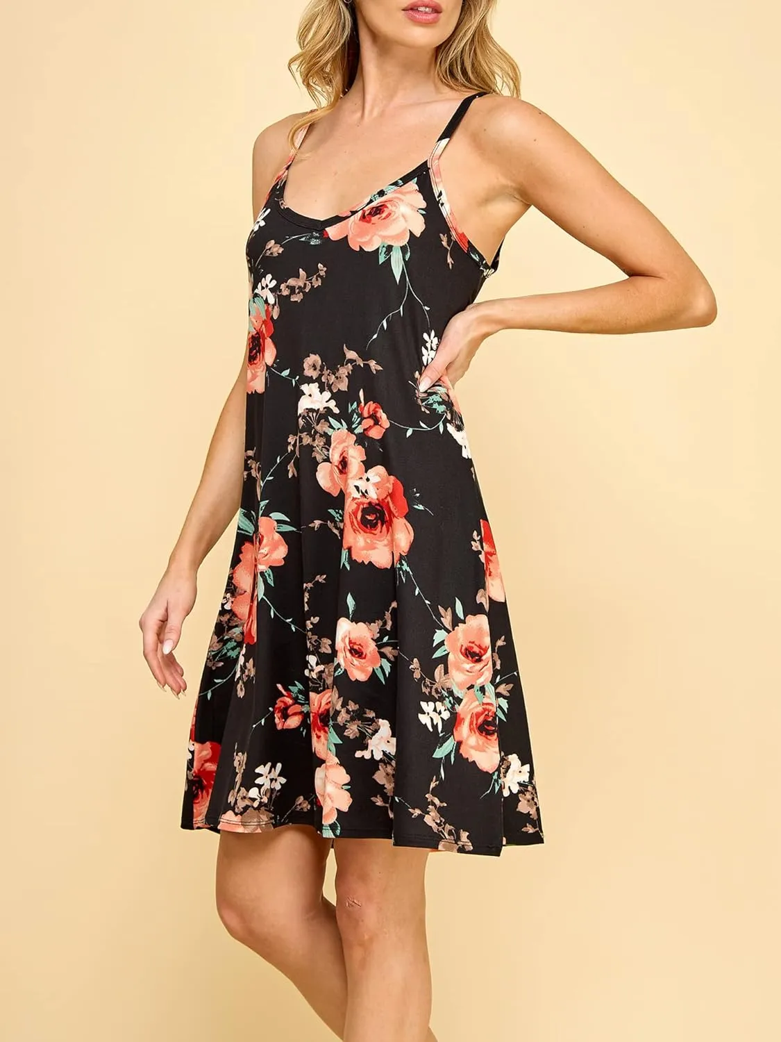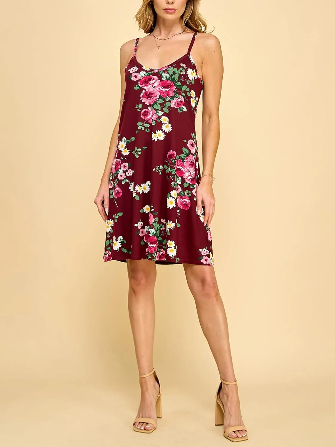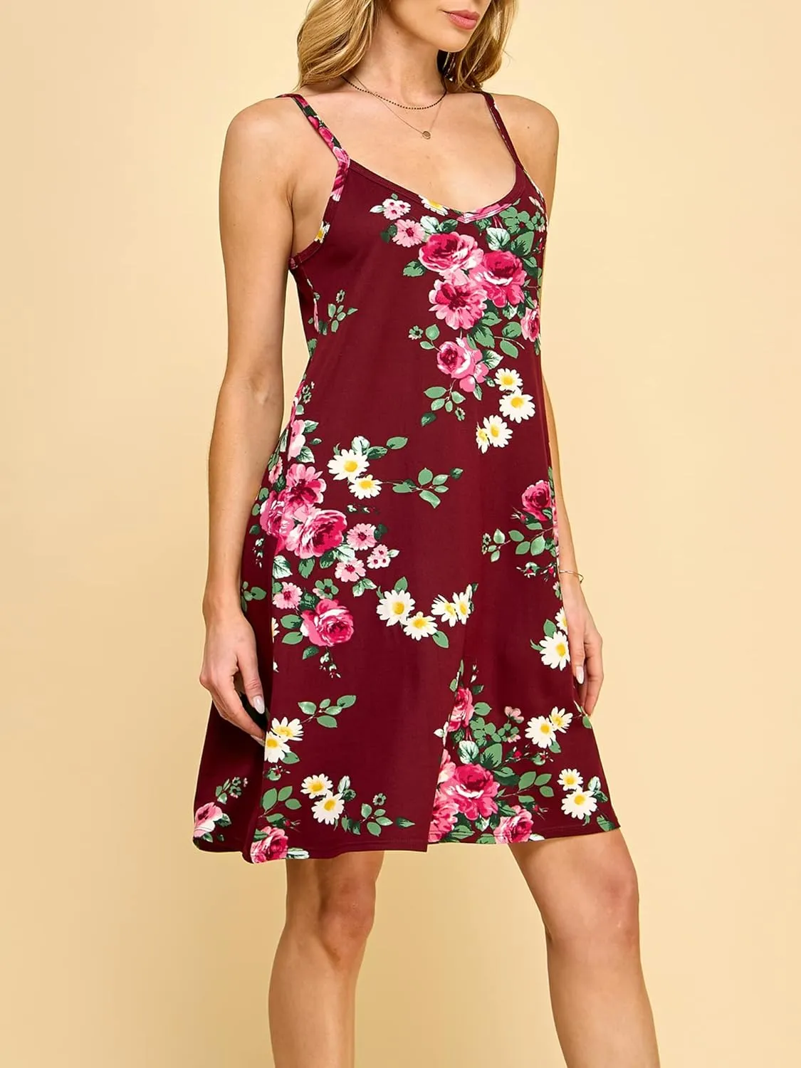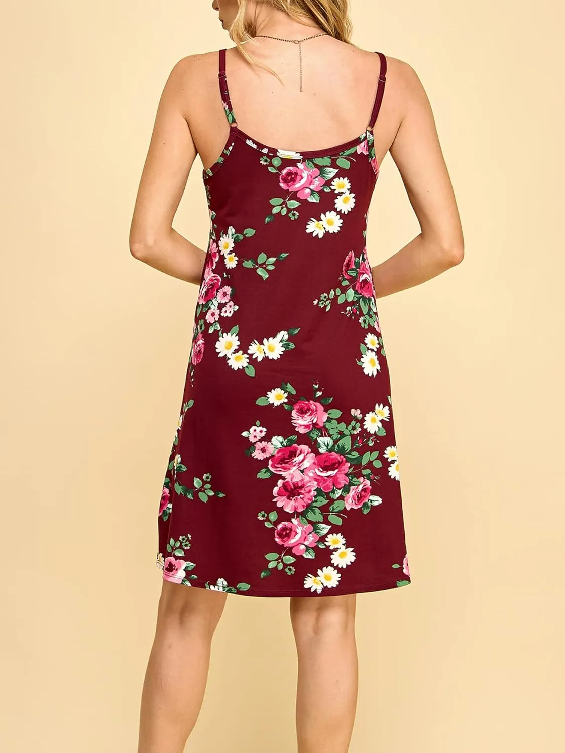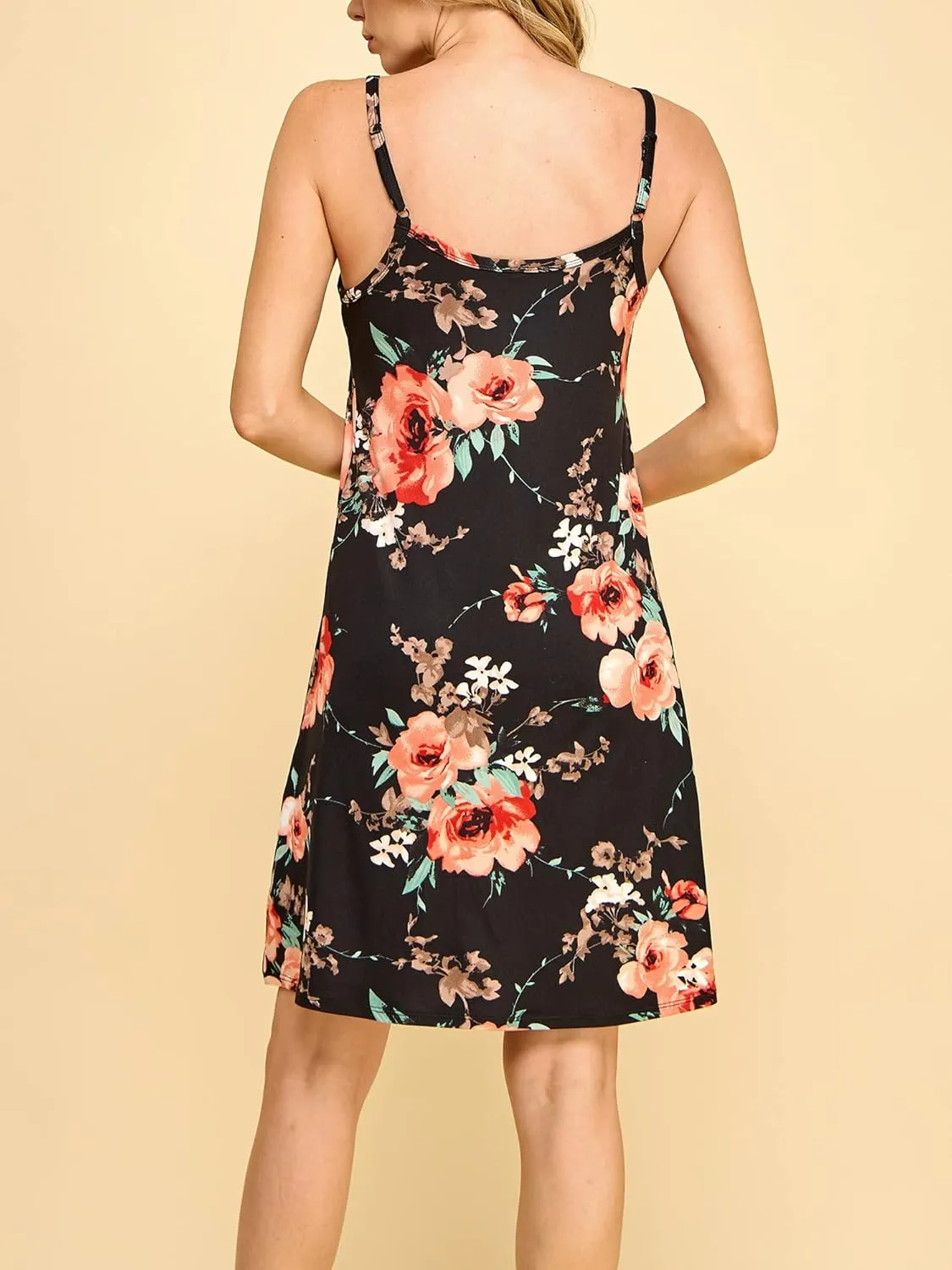 • Women's V Neck Spaghetti Strap Cami Tunic Short Slip Dress