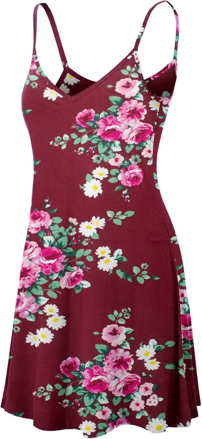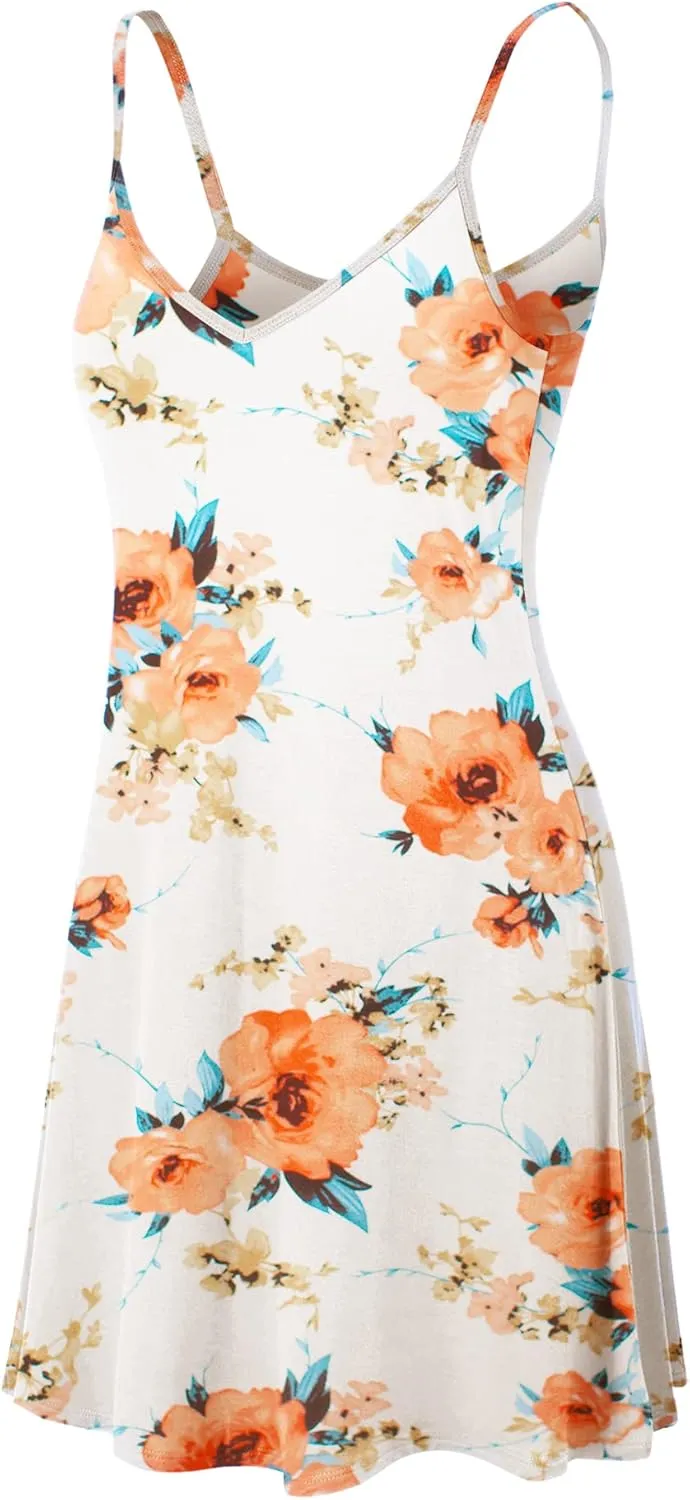 Women's V Neck Spaghetti Strap Cami Tunic Short Slip Dress